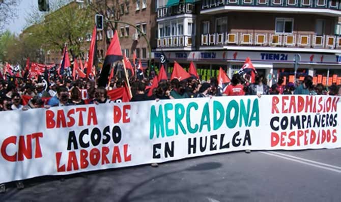 "Las concentraciones y actos informativos -afirman - tendrán lugar hasta que Mercadona acepte las reivindicaciones de los trabajadores de CNT despedidos y les pague la cantidad correspondiente a los despidos, cambiando su política empresarial de represión sindical y acoso".